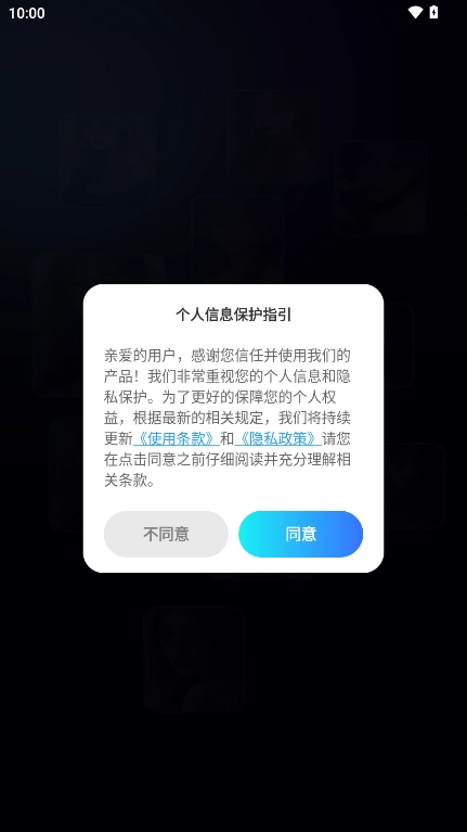 2、打开进入软件,点击同意隐私协议