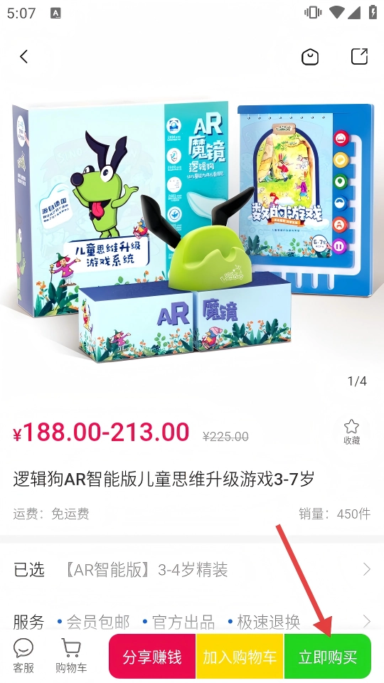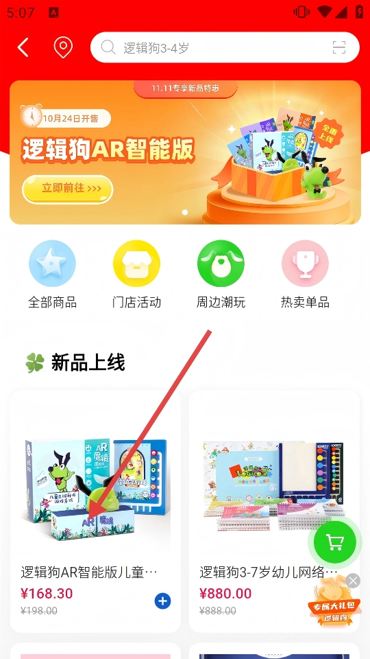 2、在商城页面点击【逻辑狗AR智能版儿童】商品卡片,可进入该商品详情页。