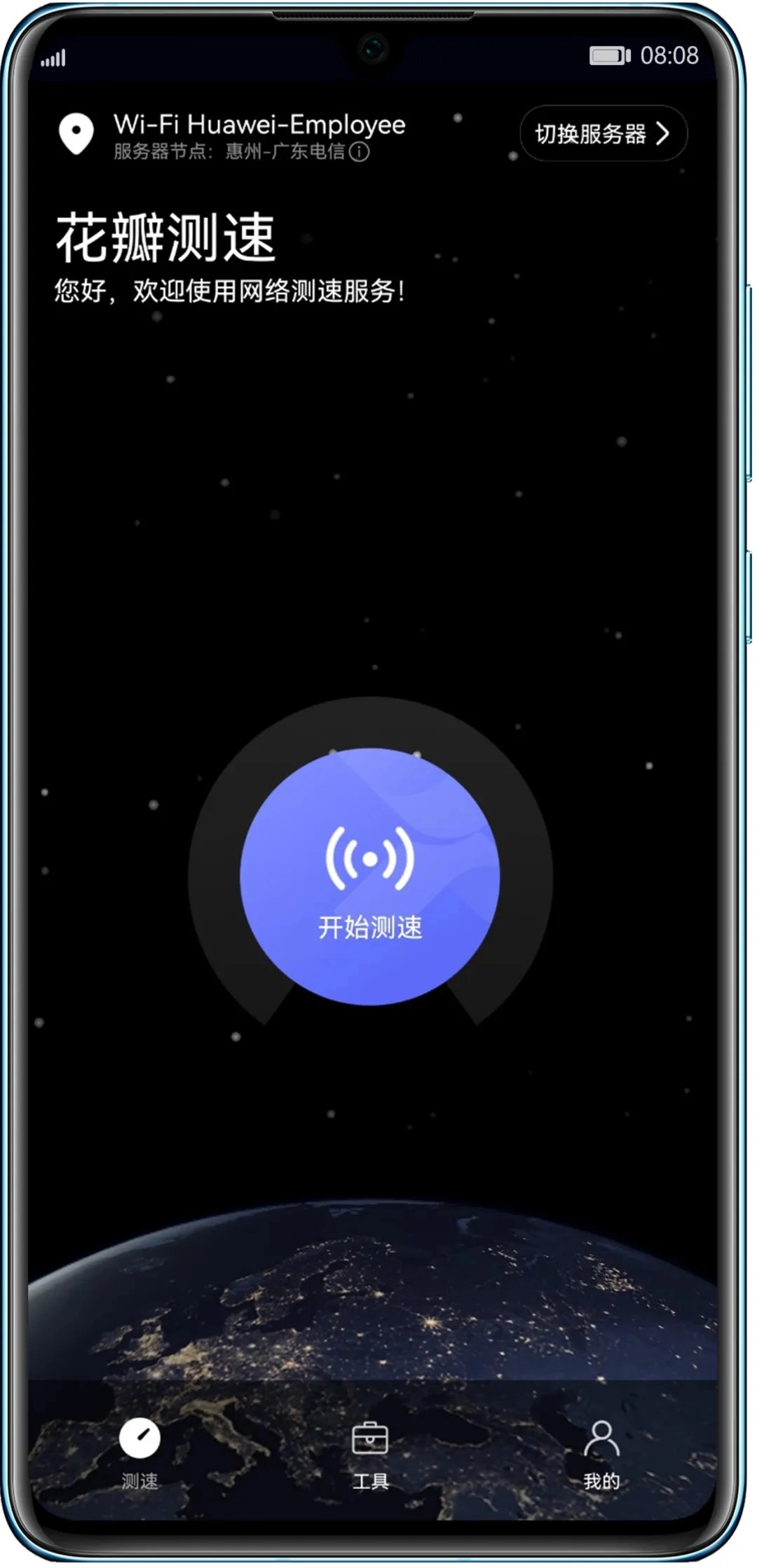 2、开启软件后,系统会自动帮我们查找距离自身最近的测速节点,以此保证后续测速结果的精确性。倘若有此需求,你也能够手动切换测速服务器。