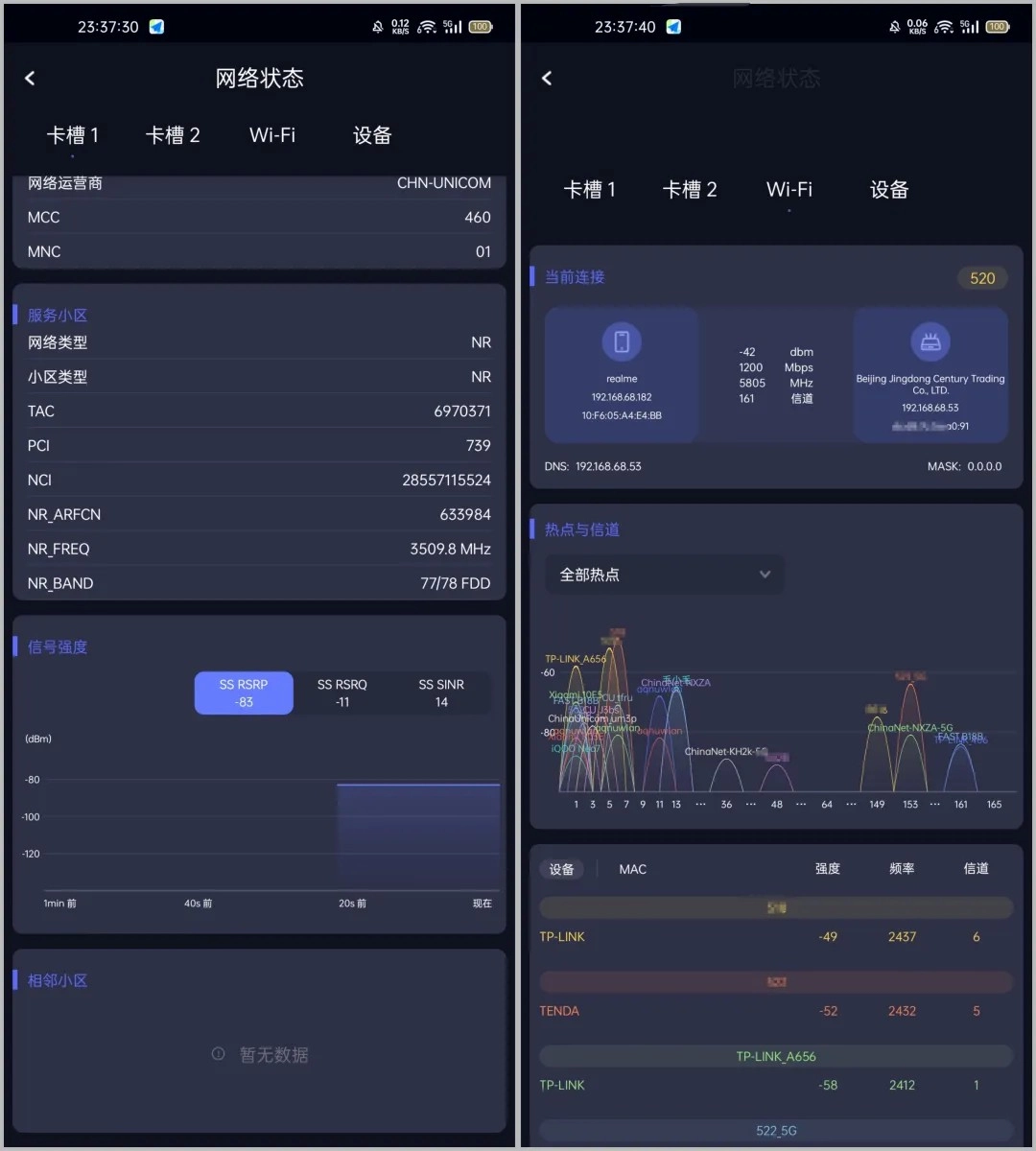 3、以网络状态为例,它能够检测当前所连网络的状态,判断信号强度、信道等信息,助力家庭网络的优化。