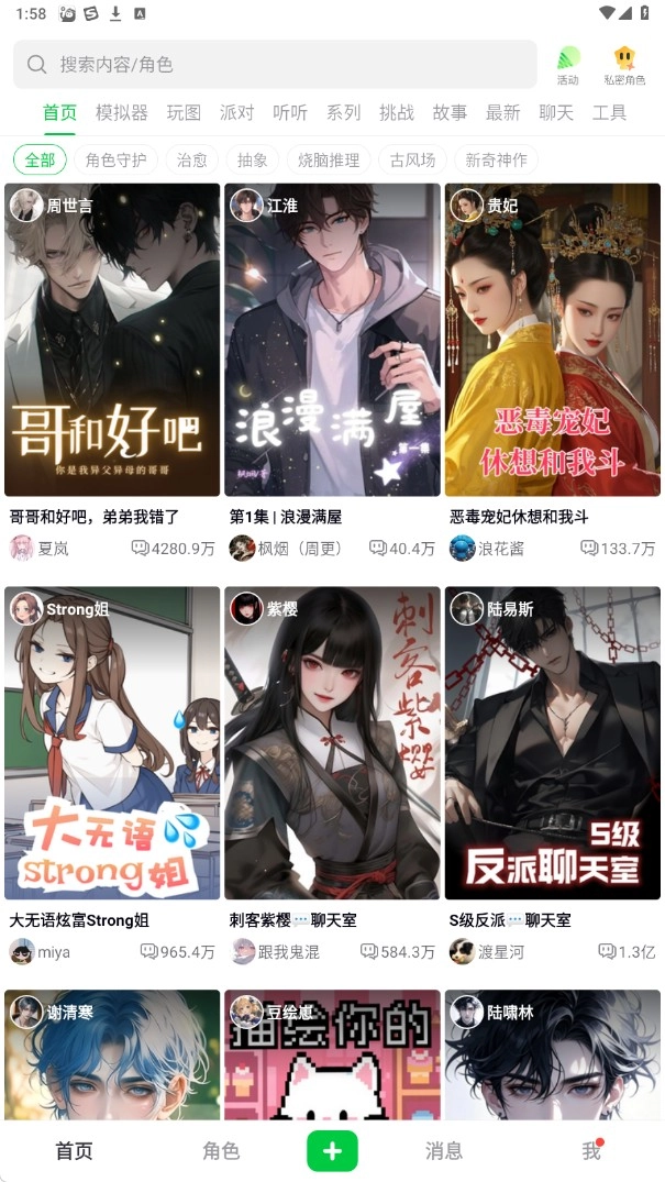 造梦次元免费版,这是一款为用户打造的平台类app,具备AI对话功能。在这款软件里,用户会接触到各式各样的故事题材,尽情自由体验。不仅如此,在造梦次元免费版中,用户还能随心所欲地创造角色形象,借助软件解锁丰富的剧情内容。软件依托大量先进的AI技术,助力用户探索更多独特玩法,给予用户全方位的帮助,让用户收获高品质的游玩体验,整个过程十分惬意舒适。