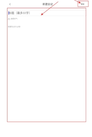 4、于日记编辑页面,填入日记标题与内容,点击【保存】按钮,即可完成日记记录。