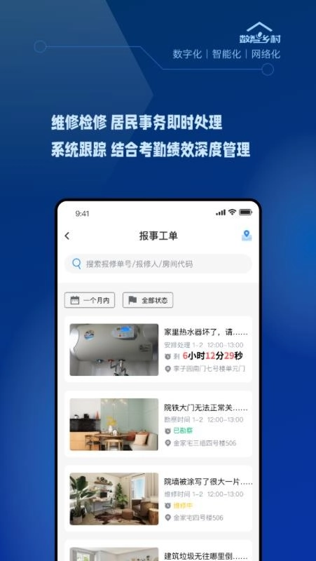 非常强大的乡村治理功能,可轻松实现报修和预约,助力高效实现乡村共治;